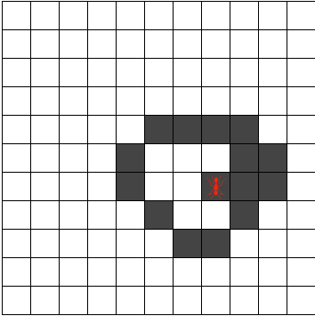 平面上的正方形格子被填上黑色或白色。在其中一格正方形内有一只“蚂蚁”。 蚂蚁的头部朝向为:上下左右其中一方。