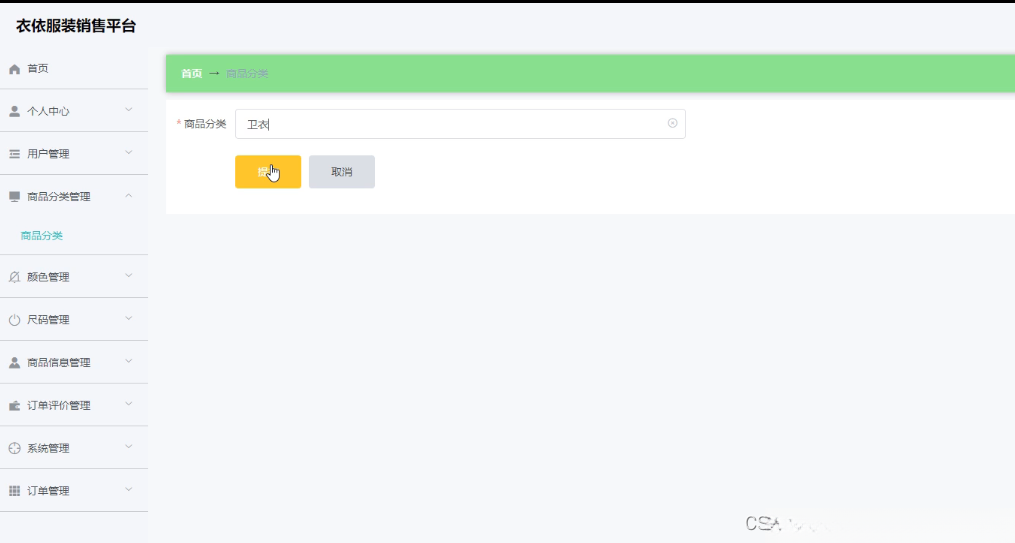 系统管理员可以对商品分类进行添加,修改,删除操作。界面如下图所示: