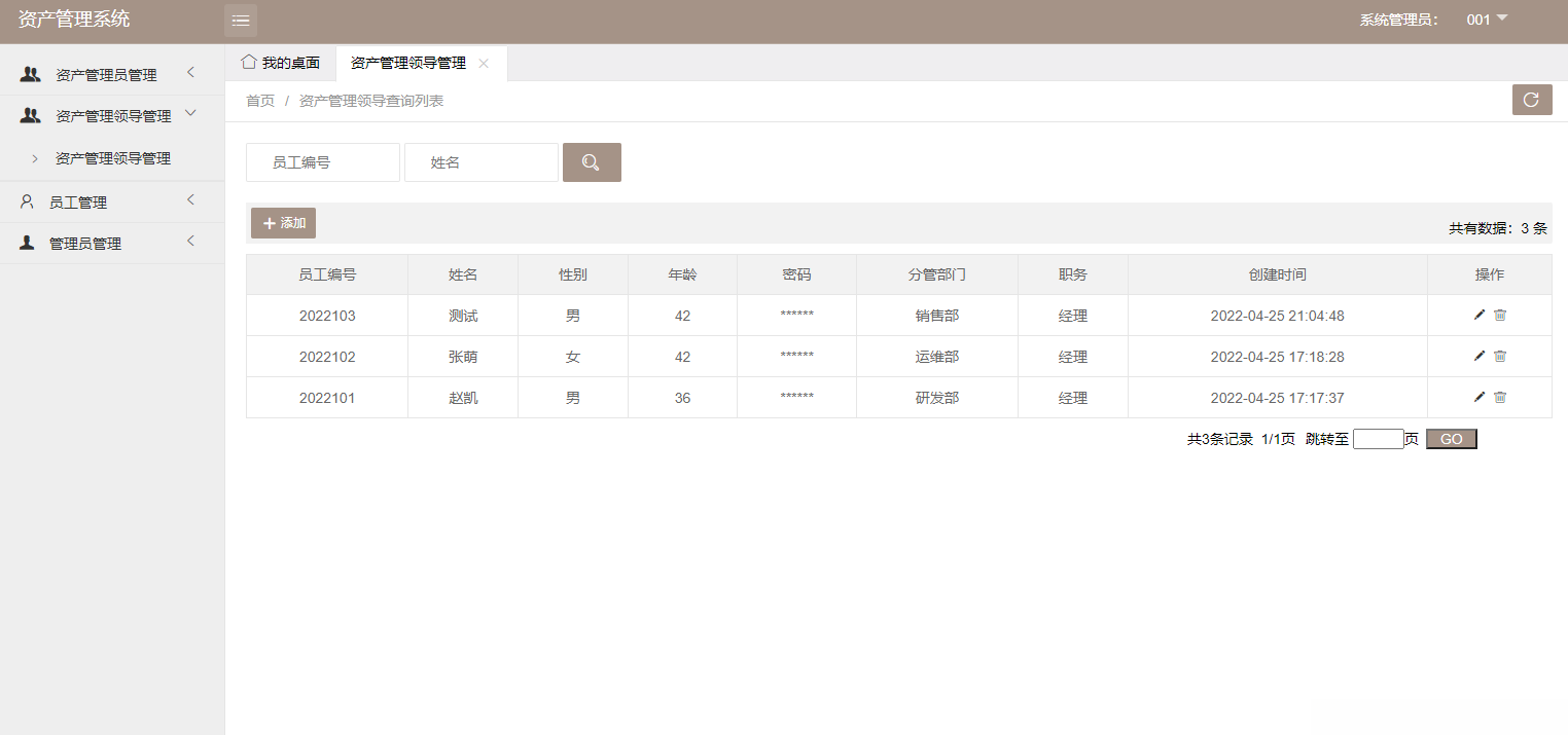 管理员功能: 登录功能 用户管理:增加、修改、删除,查询员工信息 财务人员管理:增加、修改、删除,查询财务人员信息 资产管理: 资产购置:新增资产购置记录,修改或者删除记录 资产录入:进行录入,修改或者删除 资产库存管理:维护库存信息 资产领用管理:查询领用信息,审核领用信息 资产归还管理:查询归还记录 资产盘点: 资产盘点:查询资产情况,建议使用图表方式(比如折线图、饼状图等),展示资产的使用和利用情况 资产维修管理:新增维护记录,修改,删除,查询记录 资产折旧管理:新增折旧记录,修改,删除,查询记录 资产报废管理:新增报废记录,修改,删除,查询记录 财务人员功能: 登录功能 资产管理: 资产购置:新增资产购置记录,修改或者删除记录 资产录入:进行录入,修改或者删除 资产库存管理:维护库存信息 资产领用管理:查询领用信息,审核领用信息 资产归还管理:查询归还记录 资产盘点: 资产盘点:查询资产情况,建议使用图表方式(比如折线图、饼状图等),展示资产的使用和利用情况 资产维修管理:新增维护记录,修改,删除,查询记录 资产折旧管理:新增折旧记录,修改,删除,查询记录 资产报废管理:新增报废记录,修改,删除,查询记录 用户功能: 登录功能 资产信息:查询所有已录入的资产信息,已经库存状况,可以提交领用申请 资产领用管理:查询自己的领用申请,删除申请,已领用的可进行归还 资产归还管理:查看归还信息 物资借用申请:申请物资信息(比如打印机、固定资产等),修改、删除,查询信息 用户设备管理:管理设备信息 以上有修改,下面是修改部分: 资产管理员 1.资产库存、资产购置、资产领用、资产归还、资产维修、资产折旧、资产报废等都加入导出到表格的小功能点(同资产录入) 资产管理领导(新增的角色) 1.审批:之前的资产购置审批流程为资产管理员提出购置申请,系统管理员在资产管理进行审批,现在取消系统管理员的那个功能,再新增一个叫做资产管理领导的角色,由这个领导进行对资产购置的审批,以及折旧、维修、报废的二次审批(之前是由员工提出资产管理员审批,或是资产管理员直接提出,现再后边加入资产管理领导的角色进行第二轮审批) 2.资产管理领导进行审批,同时也具有部分资产管理员的功能,比如:资产购置、资产折旧、资产报废和资产维修 系统管理员 系统管理员不再有资产管理的审批功能,下属功能只有员工管理、资产管理员管理、资产管理领导管理、管理员管理