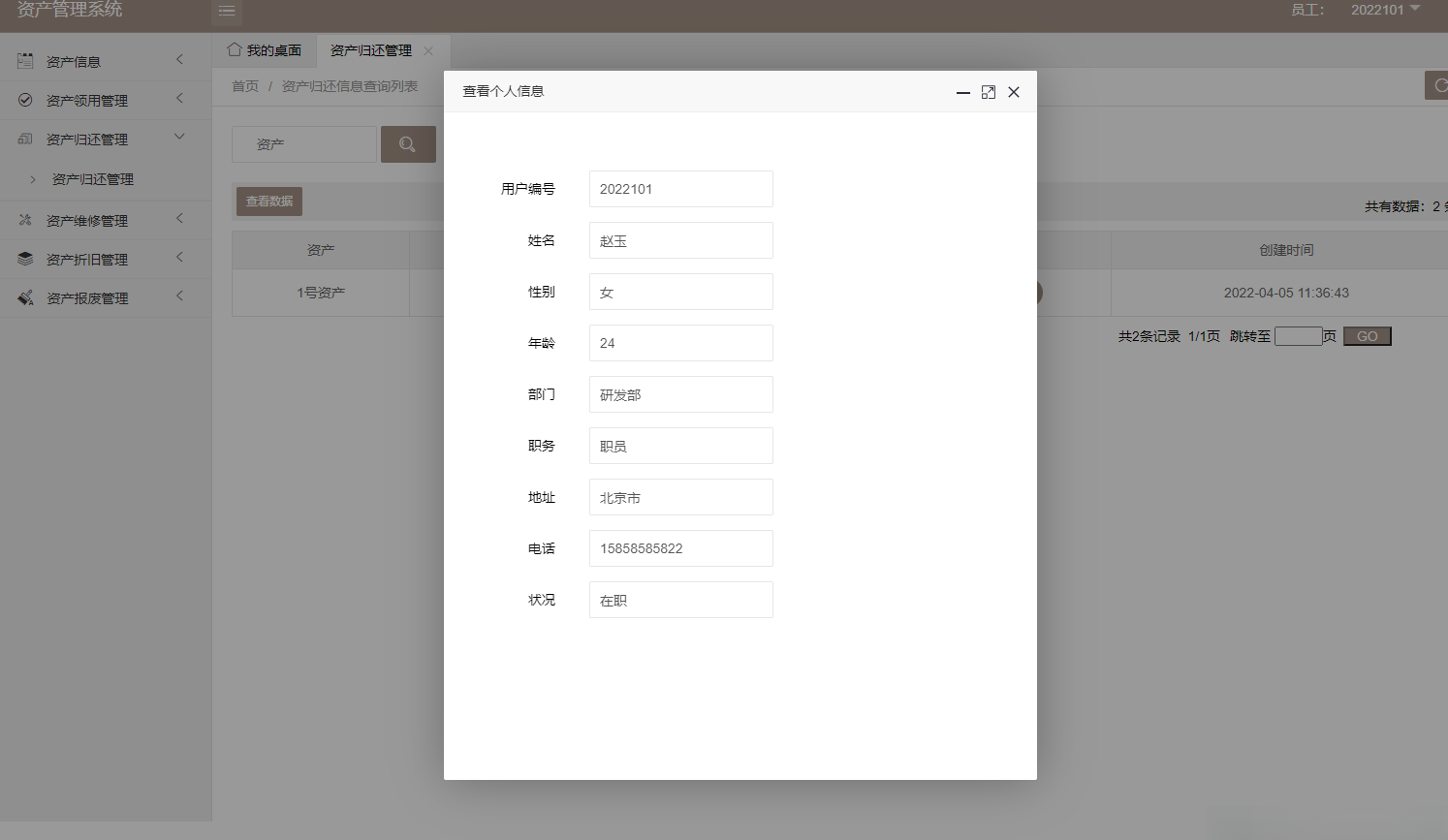 该系统创作于2022年4月,包含详细数据库设计。基于springboot技术,数据层为MyBatis,mysql数据库,具有完整的业务逻辑,适合选题:资产、公司OA、企业资产等。