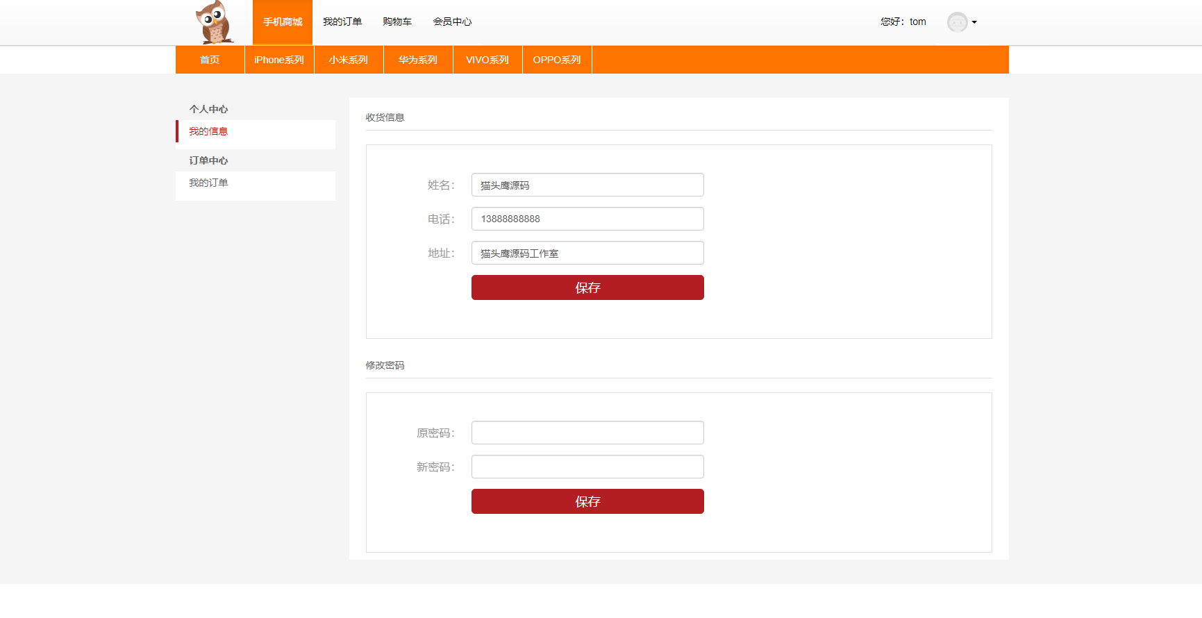 关于个人信息以及修改个人信息