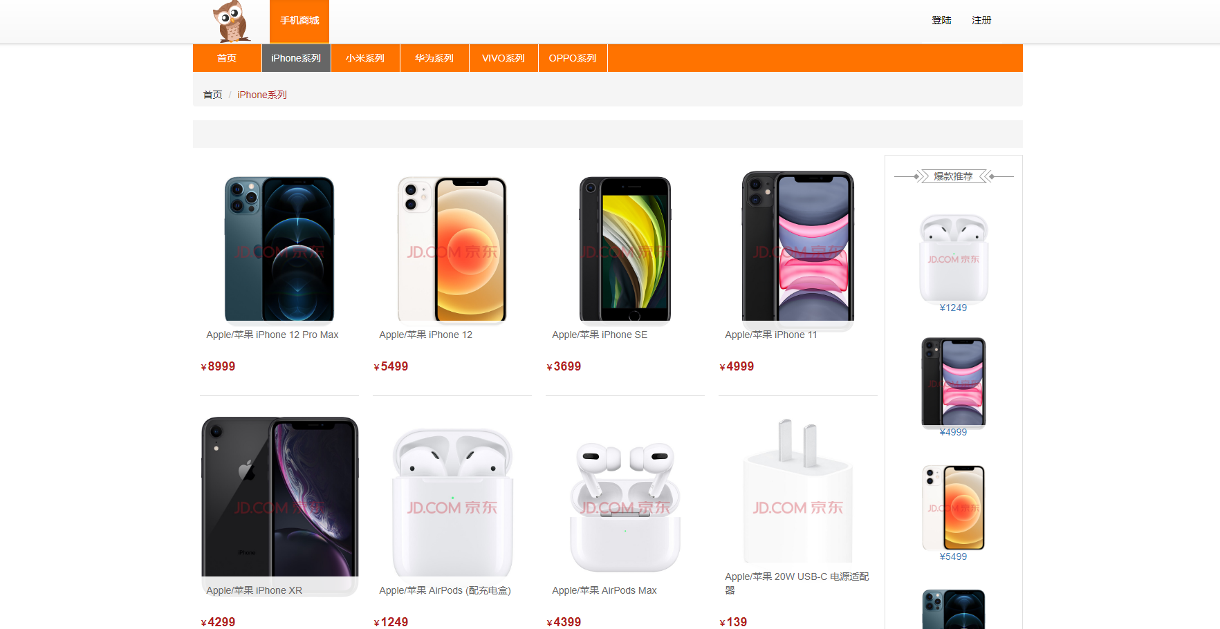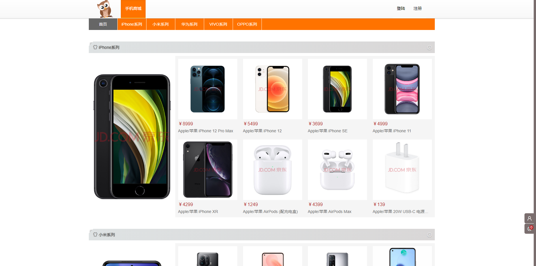 可以根据分类查看不同类别的手机