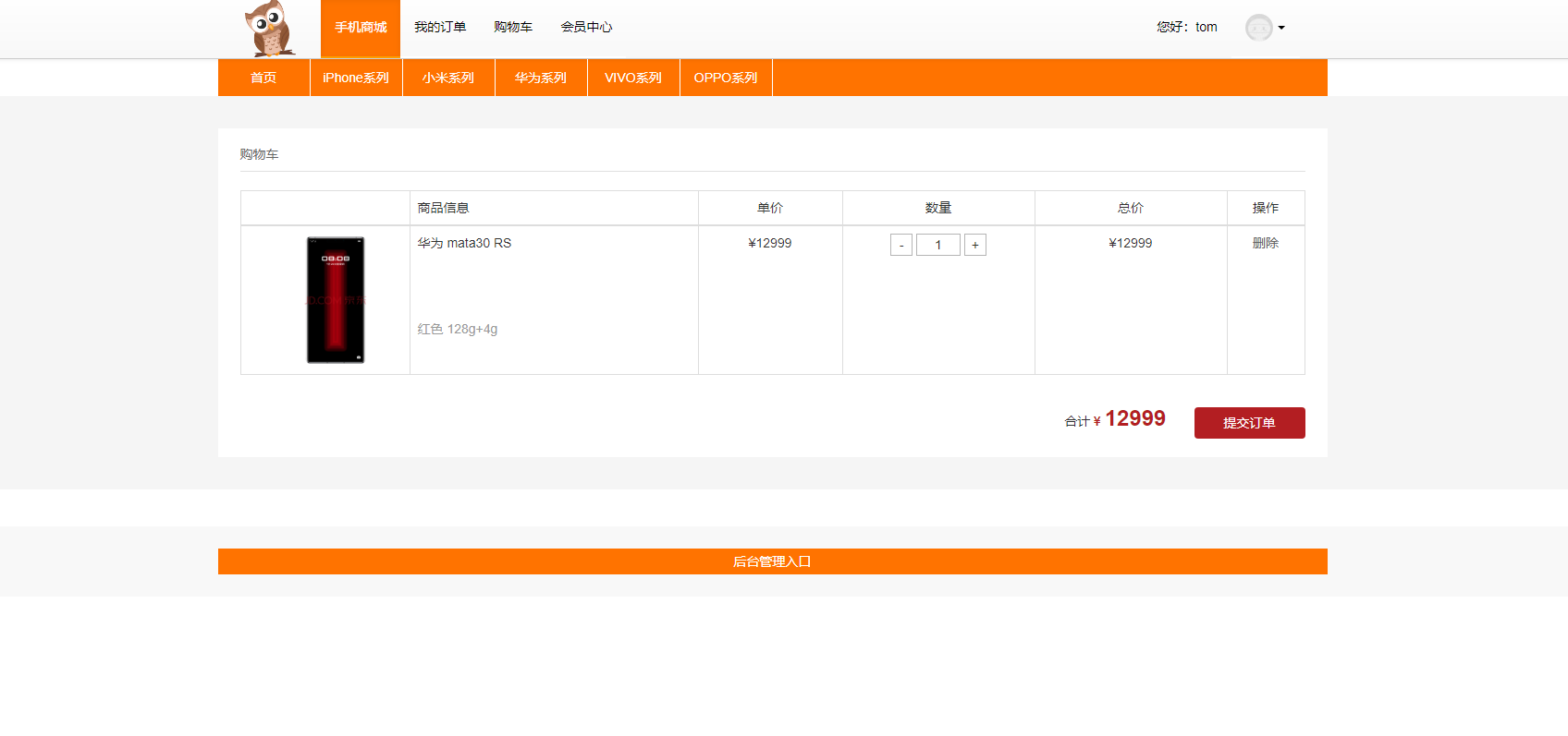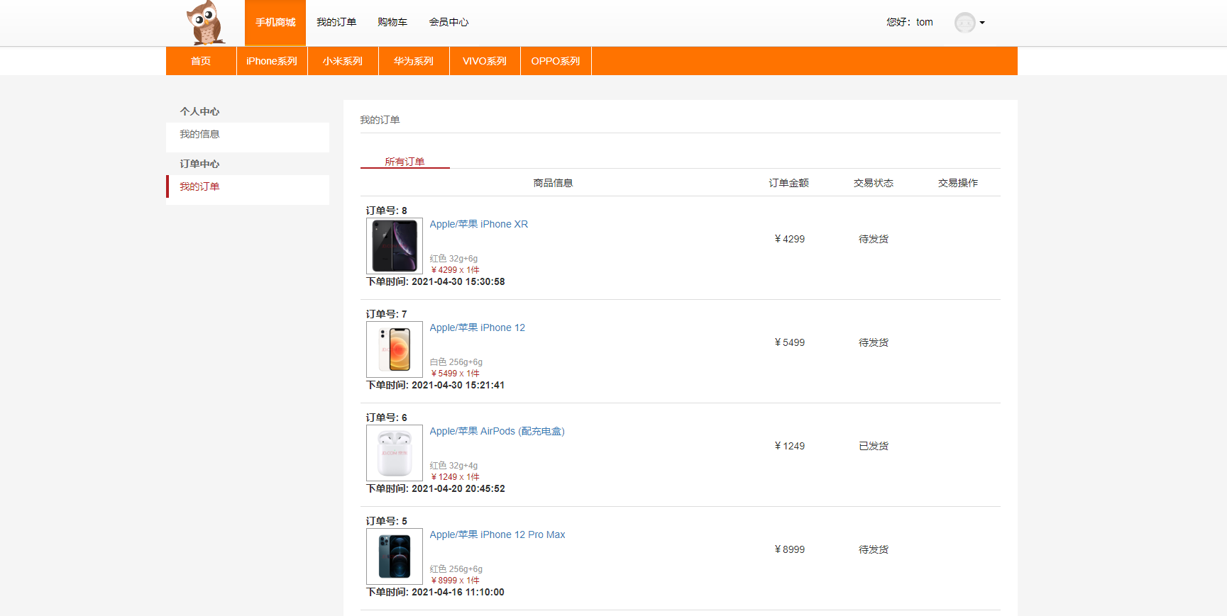 下单后可以查看到订单信息