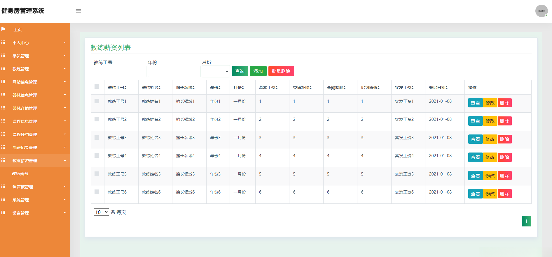 管理员是系统的核心,可以对系统信息进行更新和维护,主要实现的功能有:个人中心、学员管理、教练管理、网站信息管理、器械信息管理、课程信息管理、课程预约管理、教练薪资管理、消费记录管理、留言板管理、系统管理、留言管理。
