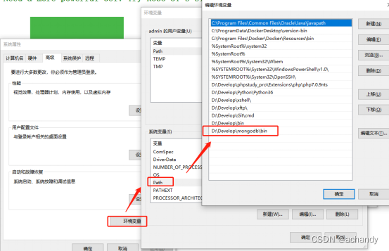3.1、实现全局使用 mongodb 命令,需要配置path环境