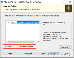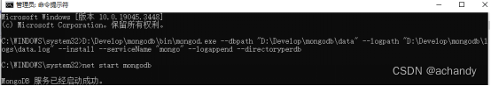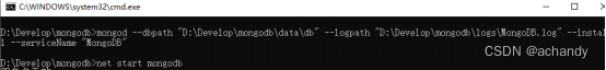 D:\Develop\mongodb\bin\mongod.exe --dbpath "D:\Develop\mongodb\data" --logpath "D:\Develop\mongodb\logs\data.log" --install --serviceName "mongo" --logappend --directoryperdb