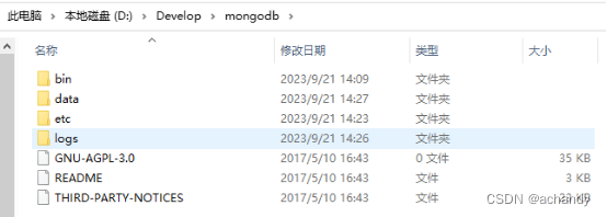 2.2、在 mongodb 目录下,添加以下三个文件夹 data、etc、logs,完整目录如下