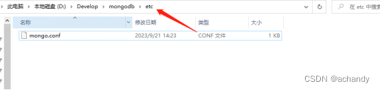 2.3、新建配置文件 mongo.conf ,内容如下(注意:dbpath和logpath。这个是根据你的文件夹路径写的)
