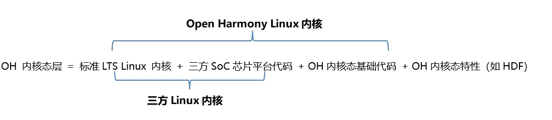 因此OH内核态层 = 标准LTS Linux 内核 + 三方SoC芯片平台代码 + OH内核态基础代码 + OH内核态特性(如HDF)