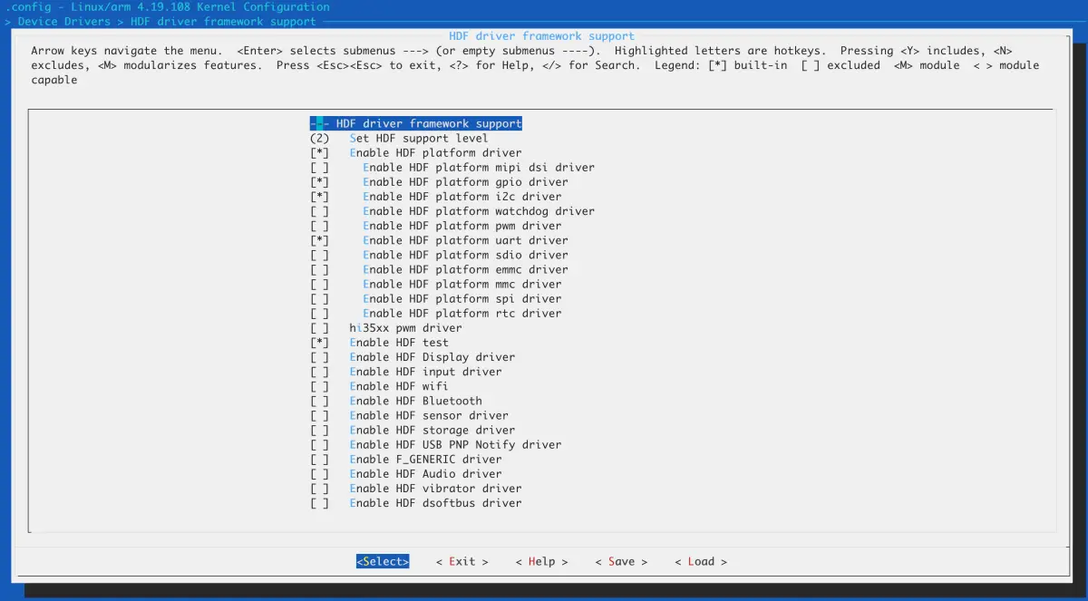 配置如下(在Device Drivers -> HDF driver framework support 目录下):