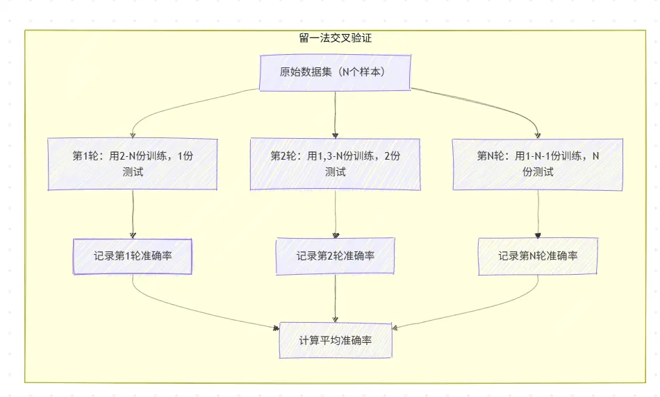 3. 留一法交叉验证(Leave-One-Out Cross-Validation, LOOCV):极致的“全面检验”