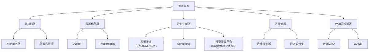 2025年AI模型部署架构呈现多样化选择,每种架构有其适用场景和优缺点: