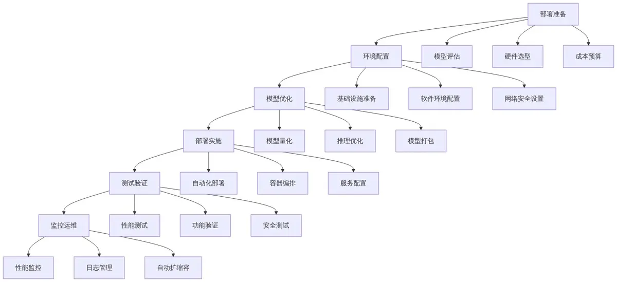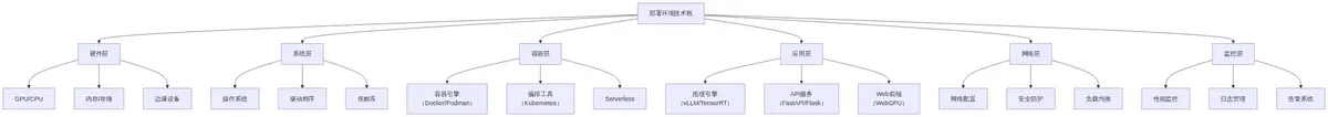 AI模型部署环境是一个复杂的技术体系,2025年已形成多层次架构,每个层级都有其关键技术和选型考量: