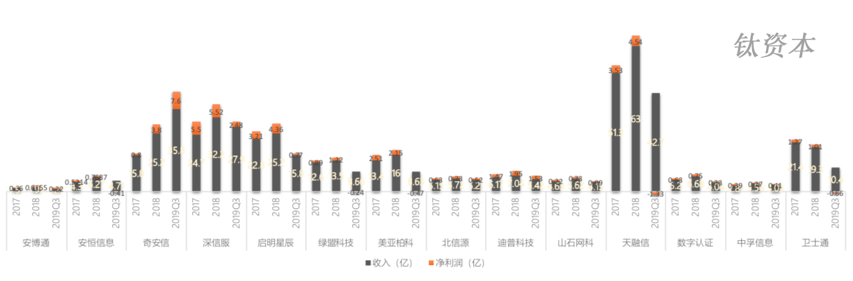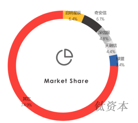 上图是用目前A股市场上14家信息安全企业的总营收形成的饼图。