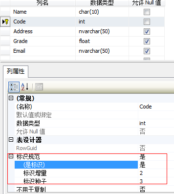 (2)定义成标识列之后,还需要分别指定“标识种子”和“标识递增量”,默认值都是1。