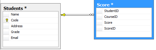 (3)选择主表为Students,主键字段为Code,对应的外键表Score的字段为StudentID、