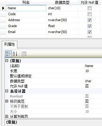 确定了列的名称、数据类型和允许为空之后,表的基本框架就完成了。