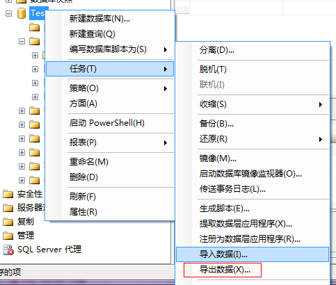 (1)在数据库右键菜单中选择“任务”->“导出数据”选项。