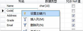 建立主键的方法比较简单,首先选择要建立主键的列,单击右键,然后在快捷菜单中选择“设置主键”选项就可以了。