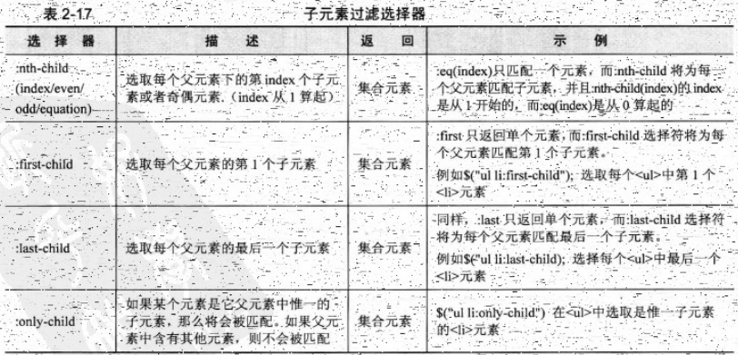 子元素过滤选择器