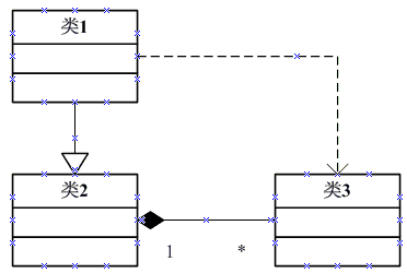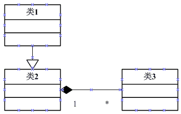 图中类1依赖于类3,类2也依赖于类3。在这里类2和类3之间是聚合关系,聚合关系的依赖方向是从菱形箭头指向直线的另一端。相当多的人把这个依赖关系搞反了。聚合关系的符号有一个演变之前,请看图2。相信看过这个图后,以后依赖关系应该不会搞错了。
