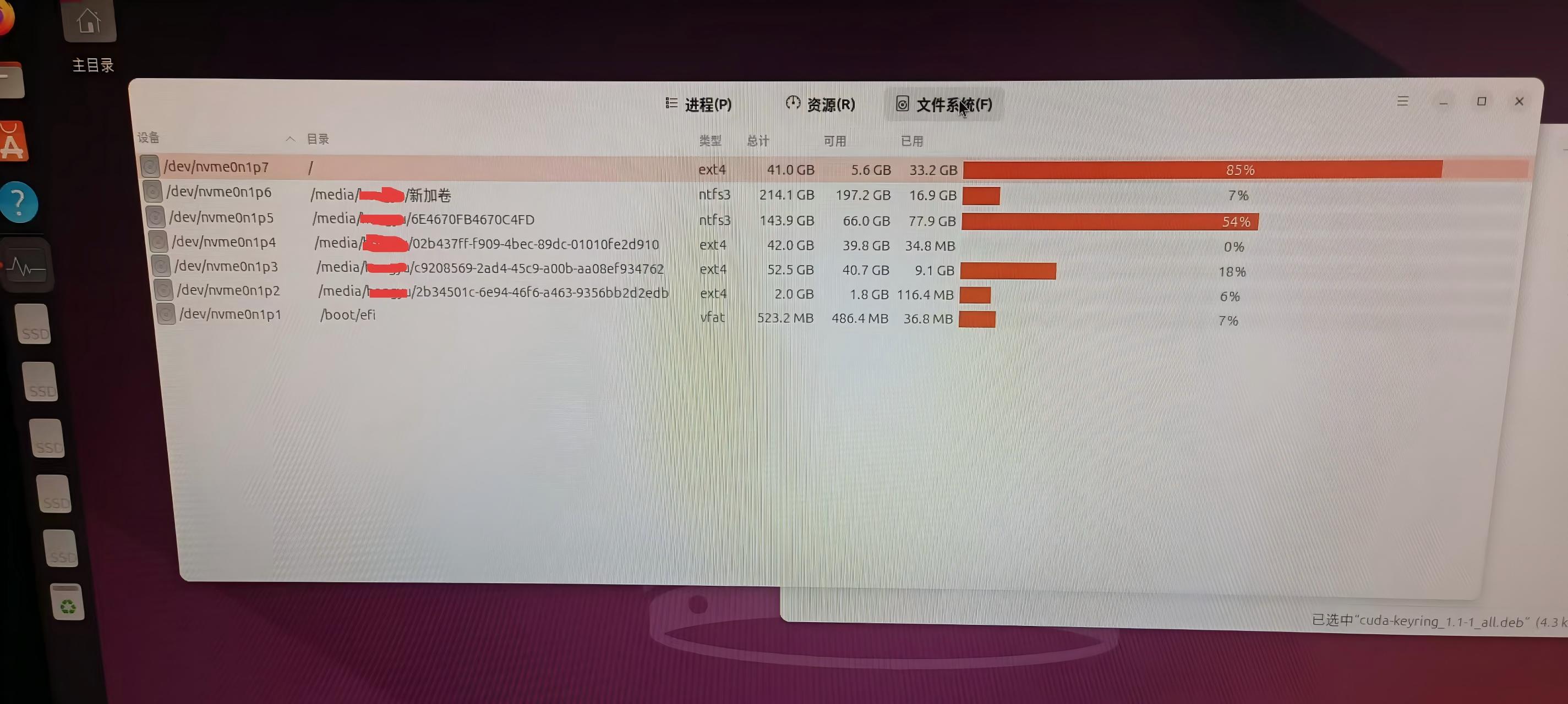 综上所示,p3/p4为银河麒麟(Kylin)系统的根分区与/home目录挂载磁盘。p5/p6为windows C/D盘。而当前ubuntu的根分区为p7。