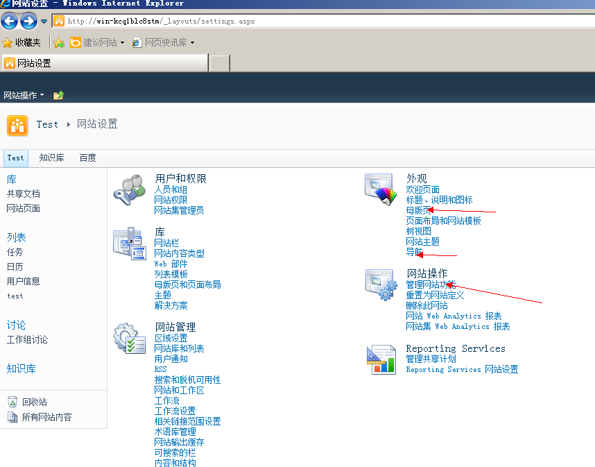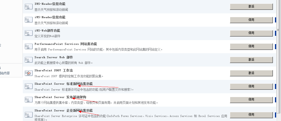 1.若要修改导航或母板页则要打开网站集的几个基本功能:网站操作——网站设置——网站集功能