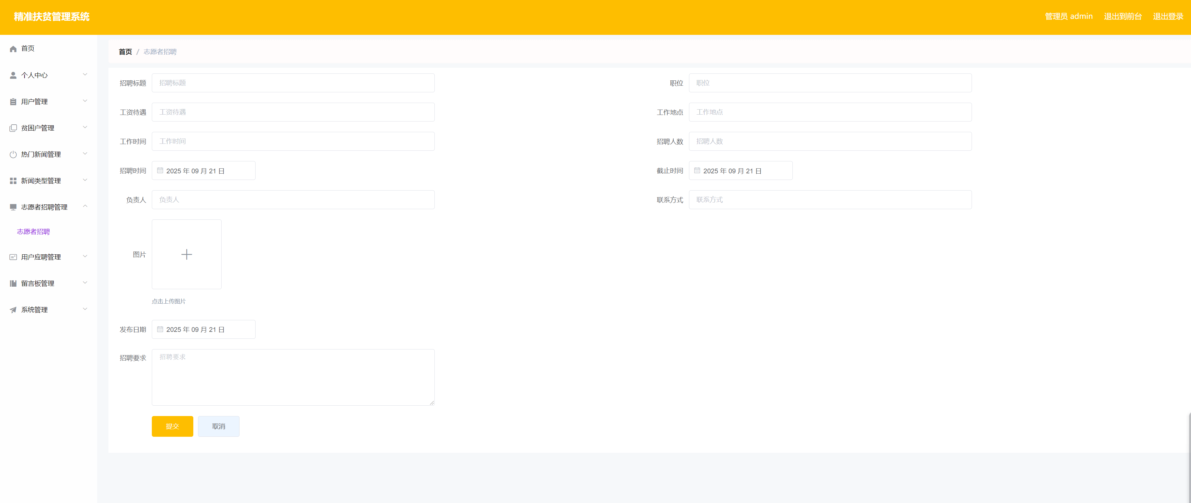 图5.4 志愿者招聘管理界面