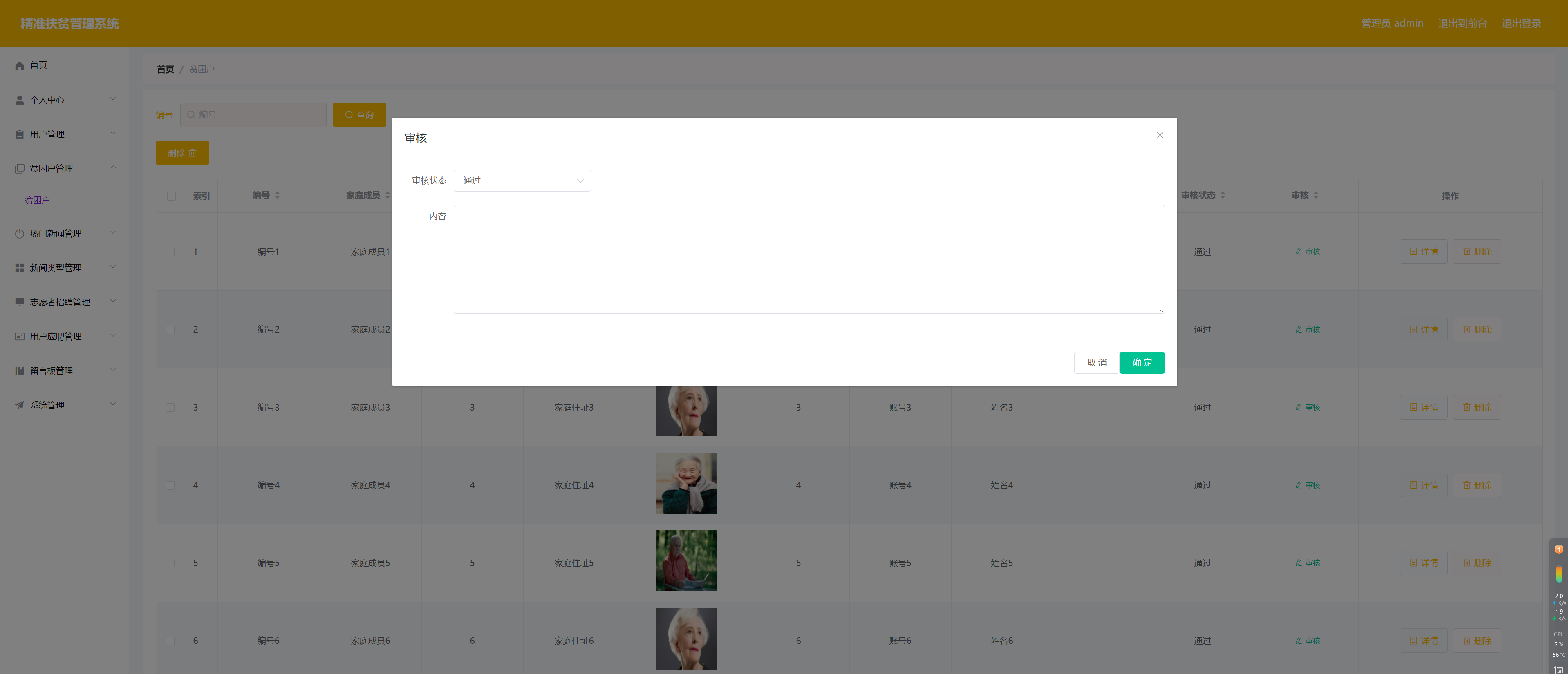 系统管理员可以对贫困户信息进行审核操作。具体界面如图5.2所示。