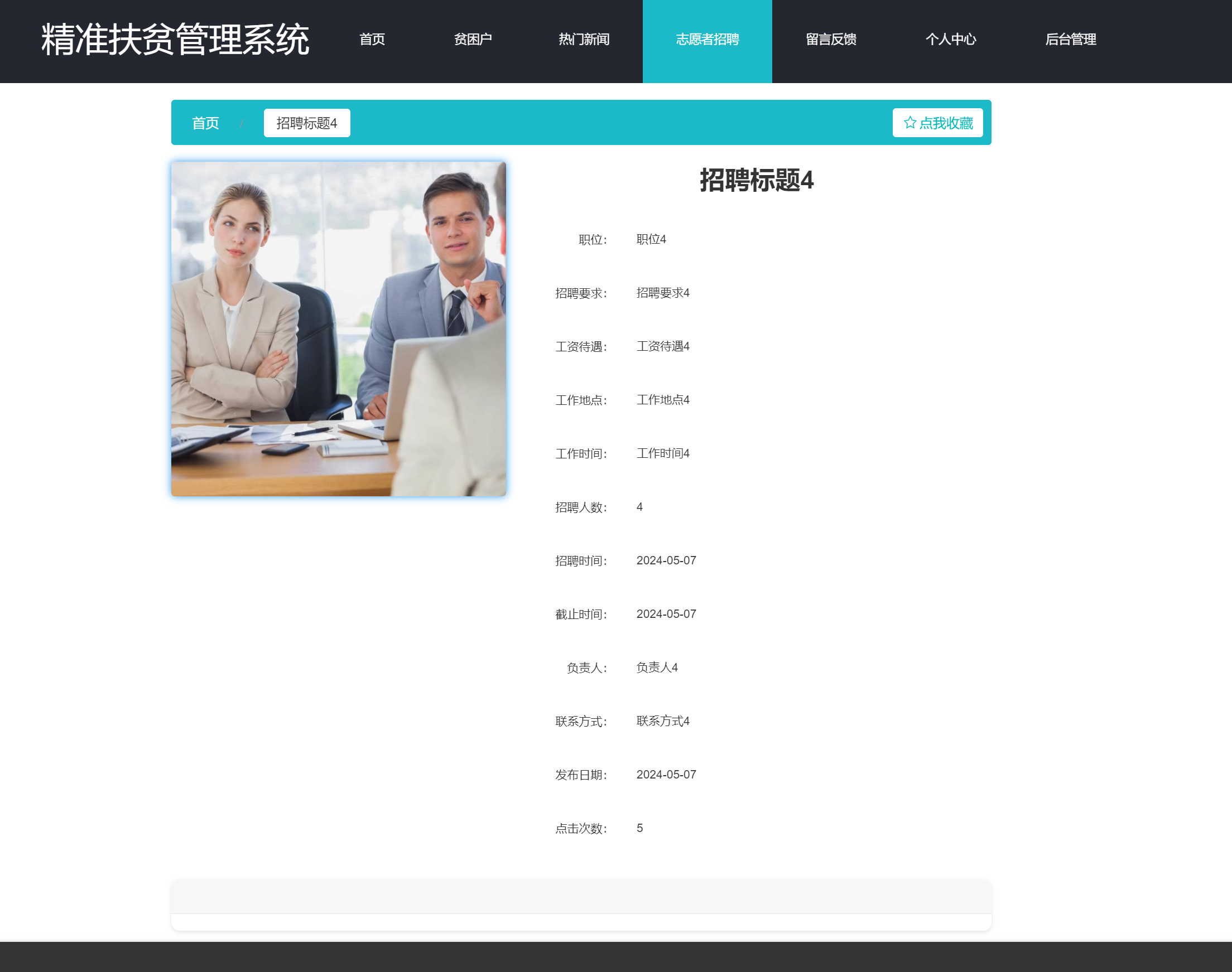 用户可以在志愿者招聘进行收藏和应聘。界面如下图所示: