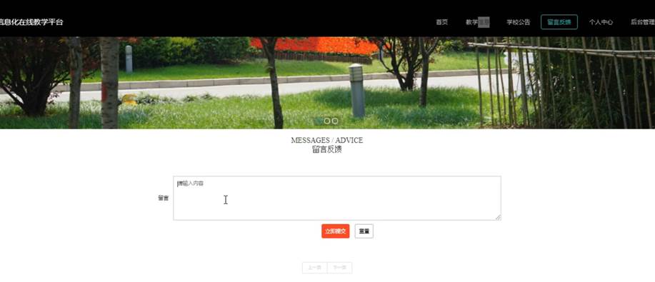 学生登录后可以在留言反馈里面提交留言。界面如下图所示: