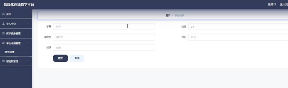 教师可以对学生成绩信息进行修改,删除以及查询操作。界面如下图所示: