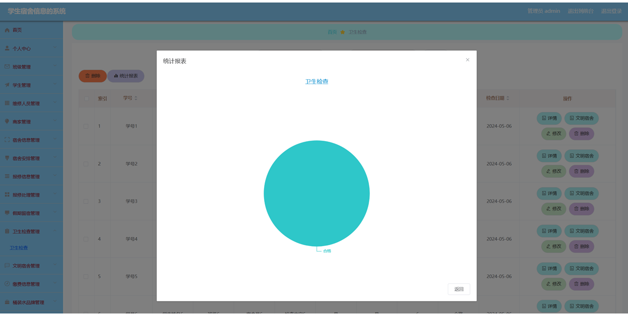 管理员可以对卫生检查信息进行统计。界面如下图所示: