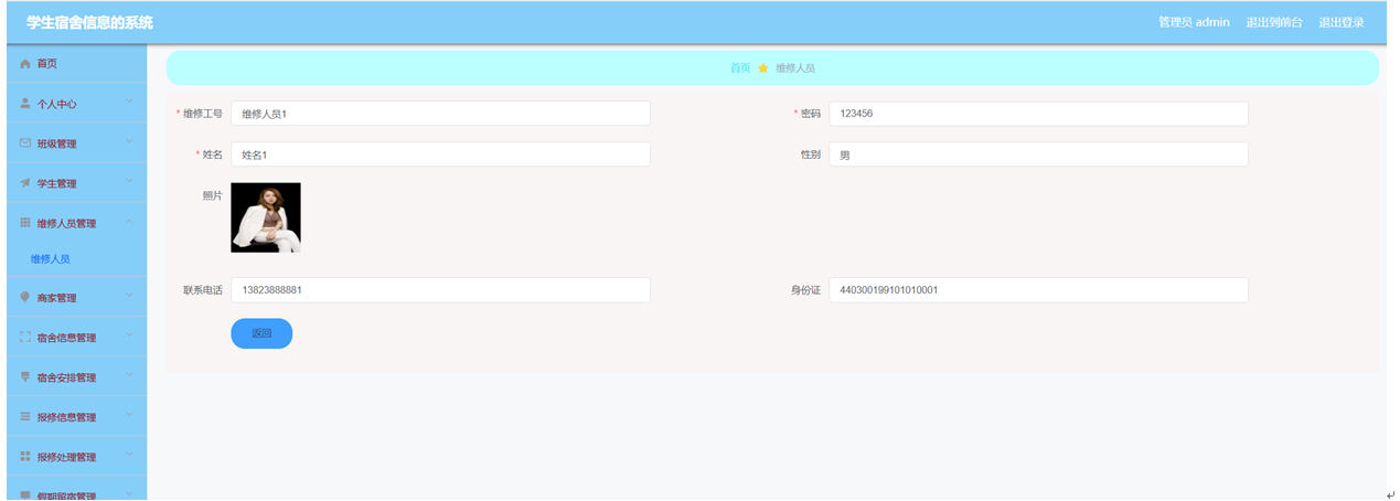 系统管理员可以查看对维修人员进行添加,修改,删除以及查询操作。具体界面如图5.2所示。