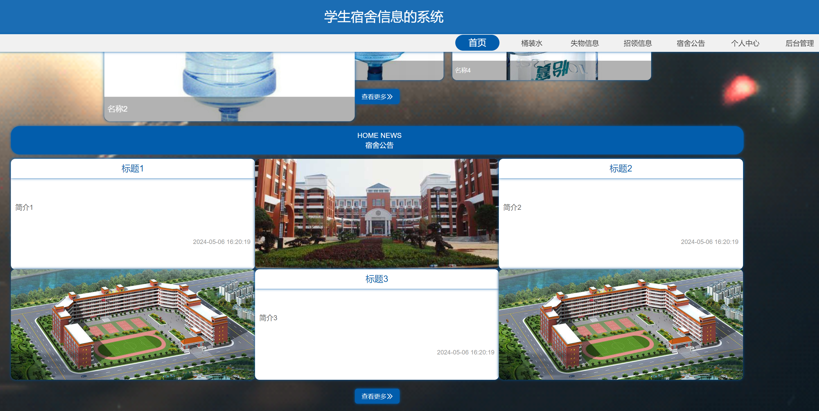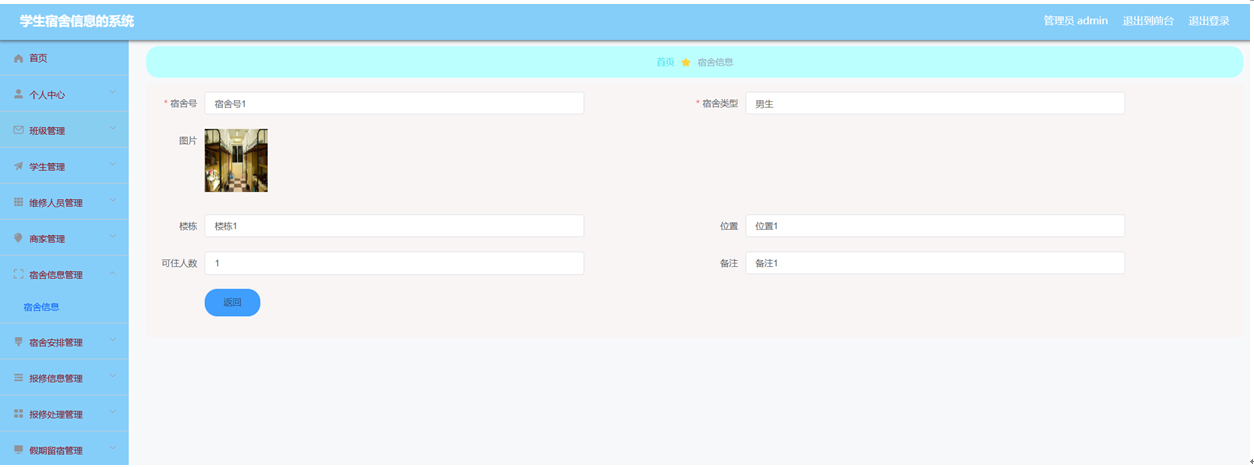管理员可以对宿舍信息进行添加,修改,删除以及查询操作。界面如下图所示: