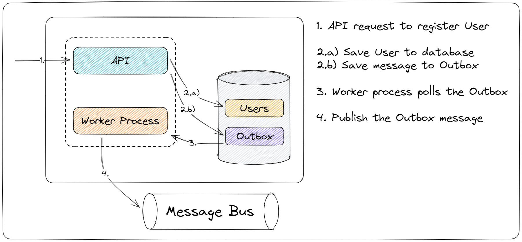 - 异步消息投递:后台进程(如 Sweeper)从发件箱读取消息并发布到消息代理。