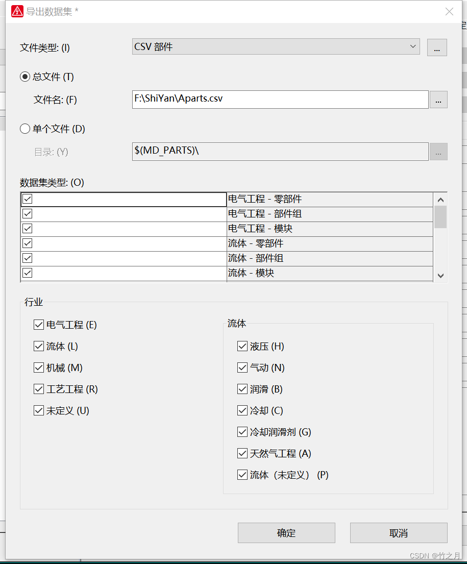 (2)“导出数据集”中,文件类型选 “CVS部件”,文件名任起一个,点击 “...”选择 保存路径,其余默认,点“确定”,等待数据导出完成(保存为 XLS工作表);