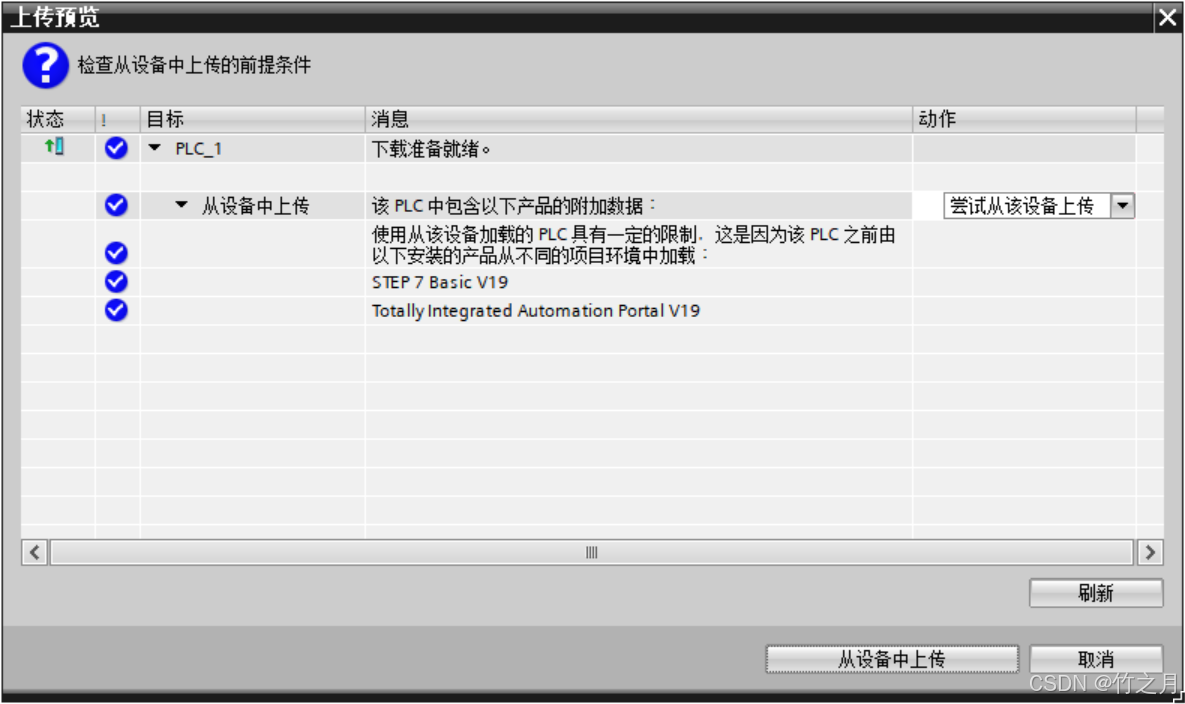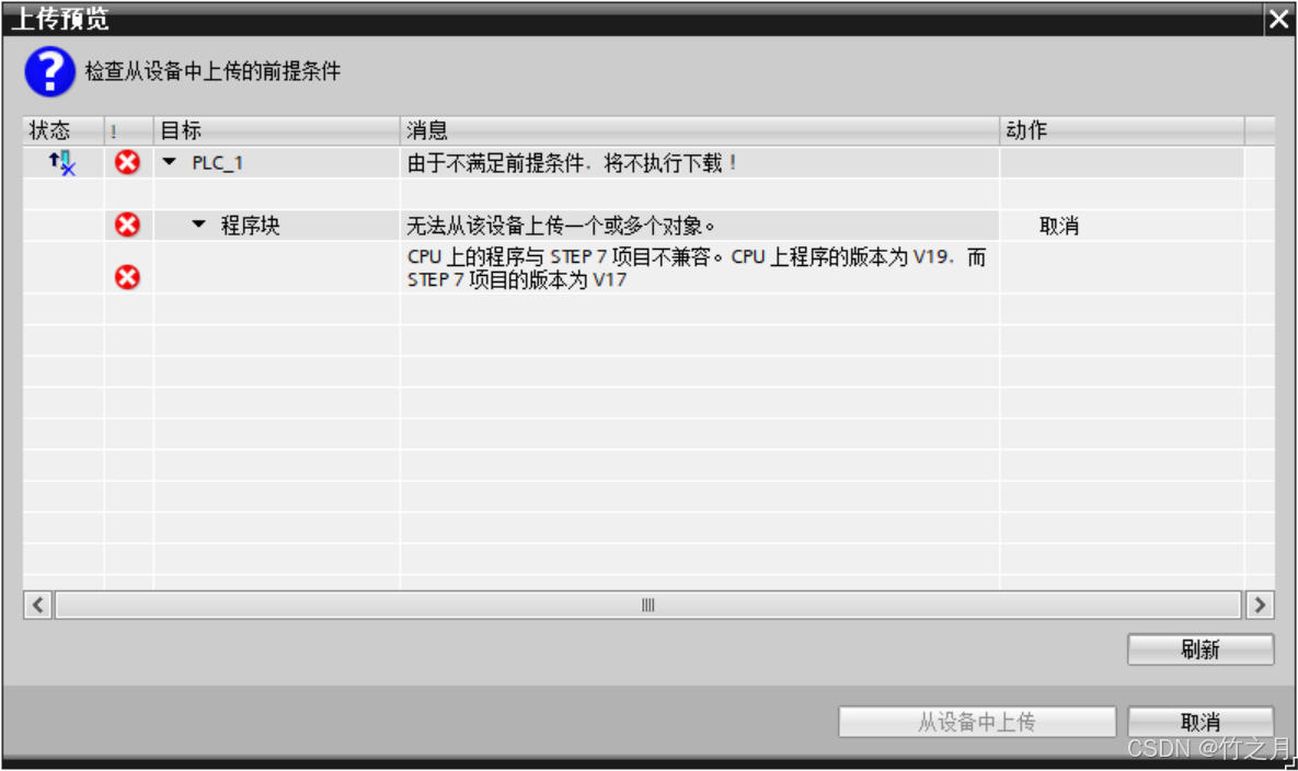 6. 电脑安装的博途版本应兼容 待上传程序的版本,否则上传失败。