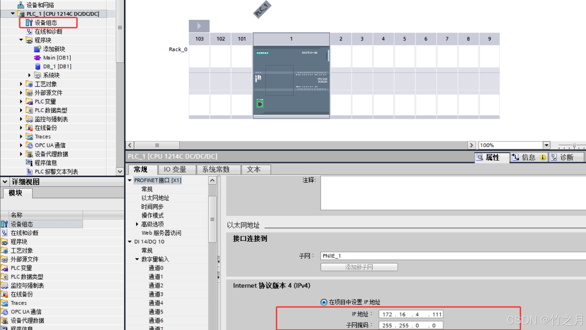 (注意:修改地址前,先将PLC 切换到【 STOP】模式)