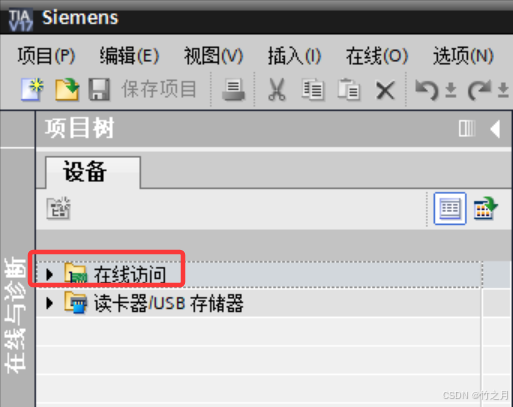 1. 让你电脑与PLC在同一网络中,打开博途软件,点击【在线访问】;