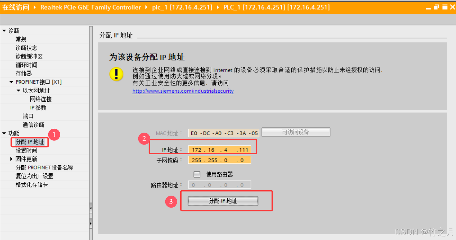 (注意:临时地址,PLC的IP地址确实改变了,但 MAINT黄色指示灯 常亮,当PLC断电重启后IP地址恢复之前的。)