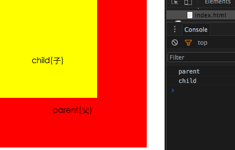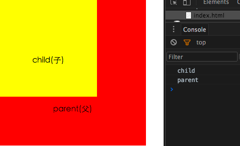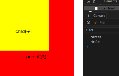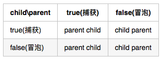 - 如果父容器为冒泡(false)机制,先触发子容器事件,再到本身;结论1