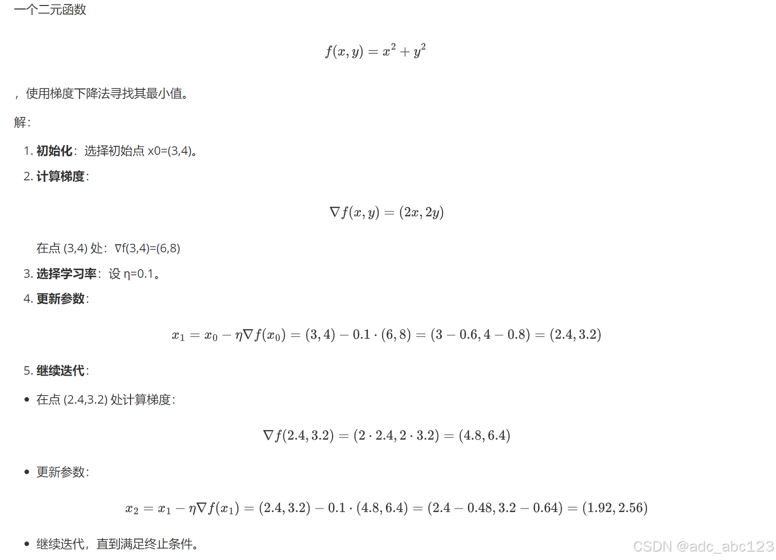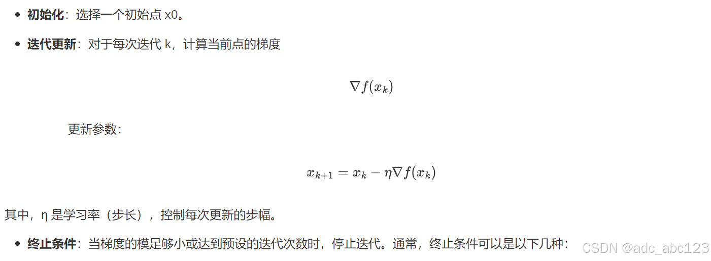 梯度下降是一种优化算法,用于寻找多元函数的最小值。其基本思想是沿着函数的负梯度方向逐步更新参数,以减少函数值。