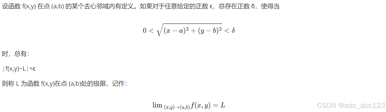 设函数 f(x,y) 在点 (x0,y0) 的某个邻域内有定义。如果极限: