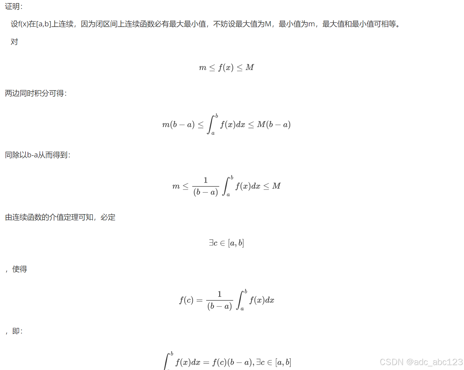 如果函数 f(x) 在闭区间 [a,b] 上连续,则存在 c∈[a,b],使得: