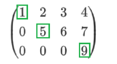 主元:每一行的第一个非零元素(主元)在上一行主元的右边。