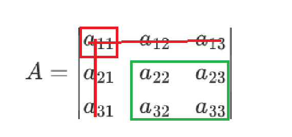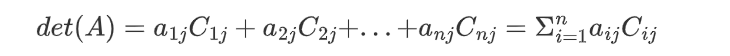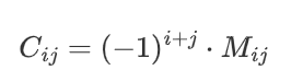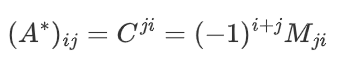 其中 Mji是 A 的第j 行第i 列元素的余子式,即去掉第 j 行和第 i 列后剩下的 (n−1)×(n−1) 矩阵的行列式。