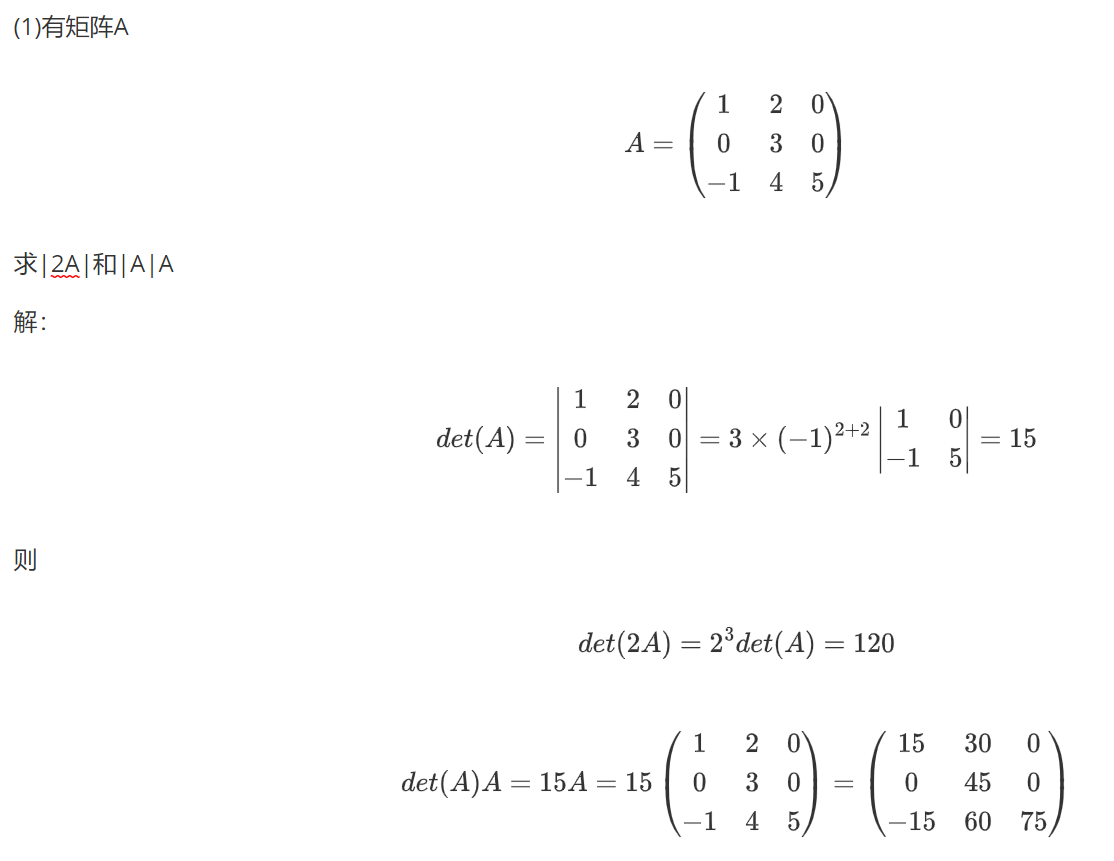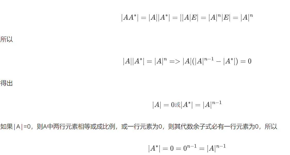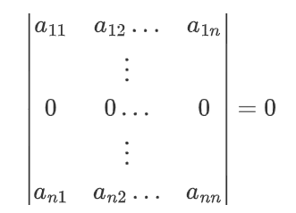 设 A 是一个 n×n的矩阵,如果 A 的第 i行和第 j行(其中 i≠j)相等,那么有: