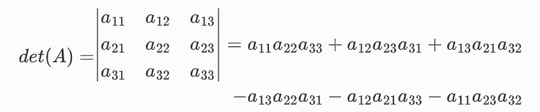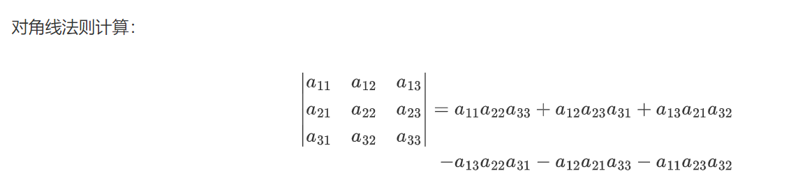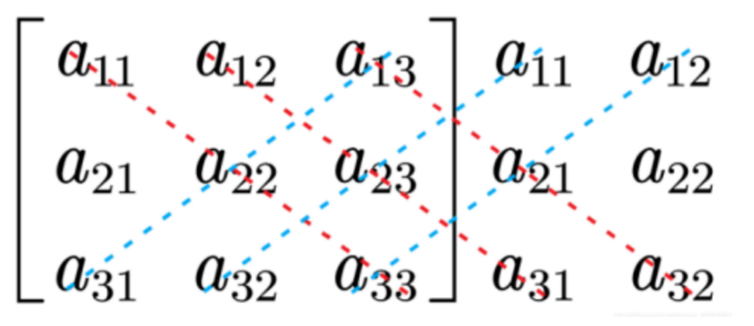 ③对角线上的元素相乘,红色相加的和 减去 蓝色相加的和