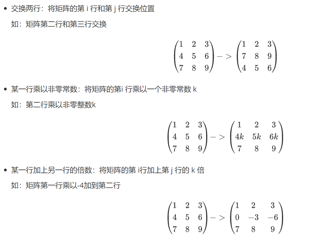 某一行(列)加上另一行(列)的倍数:将单位矩阵的第 i 行(列)加上第 j 行(列)的 k 倍。